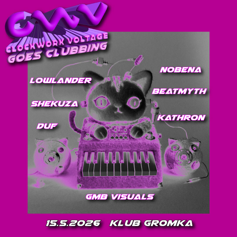 Clockwork Voltage se vrača na floor z live modularno sintezo. Surovi signali, šraufanje v realnem času in nepredvidljive zvočne poti, ki nastajajo pred tvojimi očmi in ušesi. Od hipnotičnega elektra do udarnega techna in razvejanih klubskih derivatov v svoji najbolj organski, neukročeni obliki.