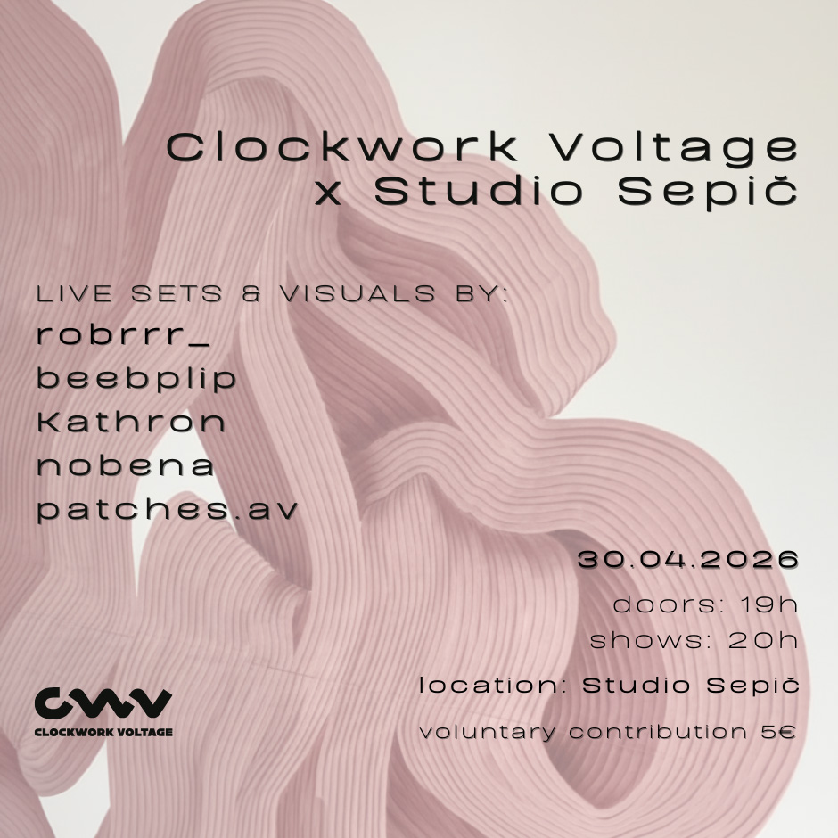 Vecer kjer se zvok sreča z atmosfero v počasnem, skoraj hipnotičnem toku. Zvočne plasti, ki se gibljejo od globokih ritmov do prasketajočih se melodij, CWV v Studiu v zivo prepleta glasbo ter vizualne podobe, katere skupaj oblikujejo prostor za povezanost, umirjeno gibanje in pogled navznoter, ujet v kresno noč.
